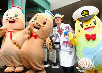 さかなクンともぐらんぴあの出会いは、2005年。東日本大震災を機に、さかなクンは応援団長になり、さかなクンか育てたお魚やイラストなど、たくさんの支援をしてくれています。